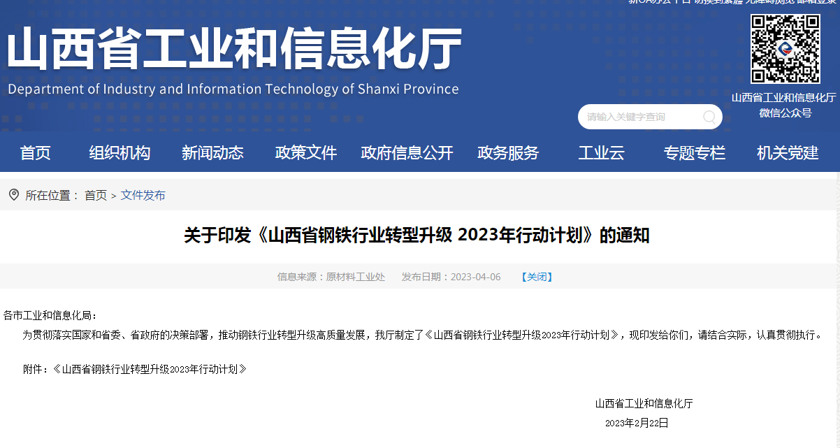 山西省鋼鐵行業(yè)轉(zhuǎn)型升級(jí)2023年行動(dòng)計(jì)劃